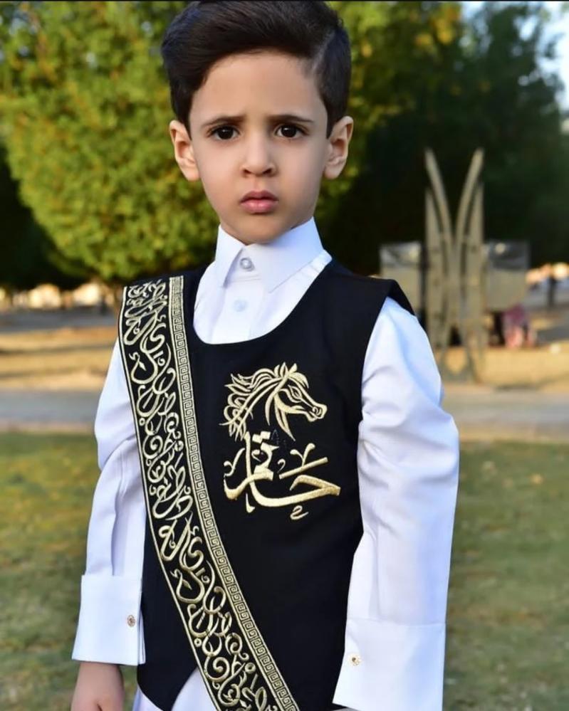 أضفي لمسة من الأناقة والتراث على إطلالة طفلك مع سديري الأسود الفاخر المصنوع من أجود أنواع قماش الكريب. يتميز هذا السديري بتطريز ذهبي أو فضي رائع يمنحه لمسة عربية أصيلة.