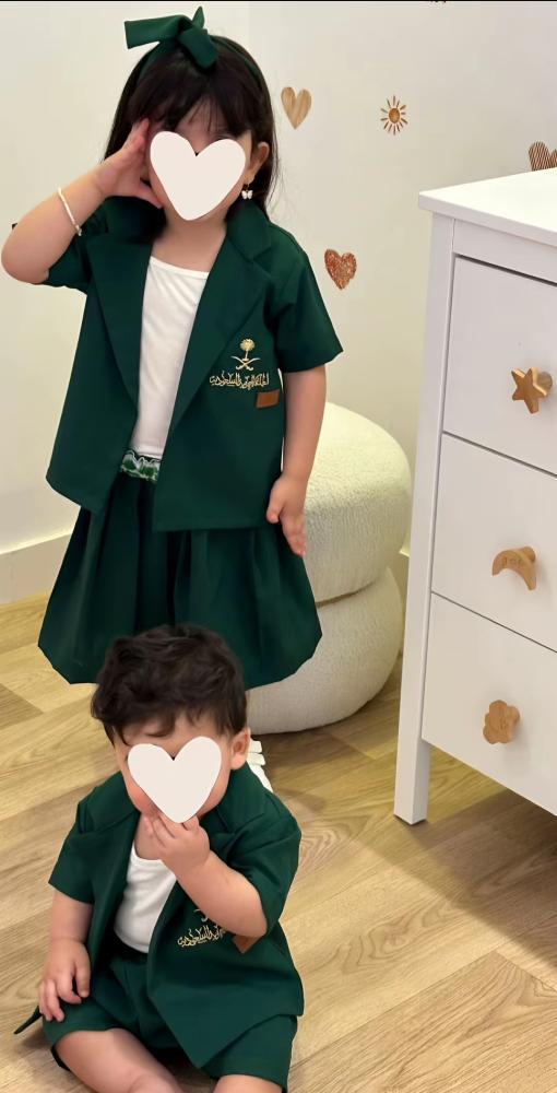 🎉🇸🇦 اليوم الوطني أجمل لما يشارك طفلك الفرح بإطلالة مميزة دعوا أطفالكم يعيشون اللحظة بفخر وأناقة مع طقم اليوم الوطني 95 – تصميم حصري يعكس هوية "عزنا بطبعنا