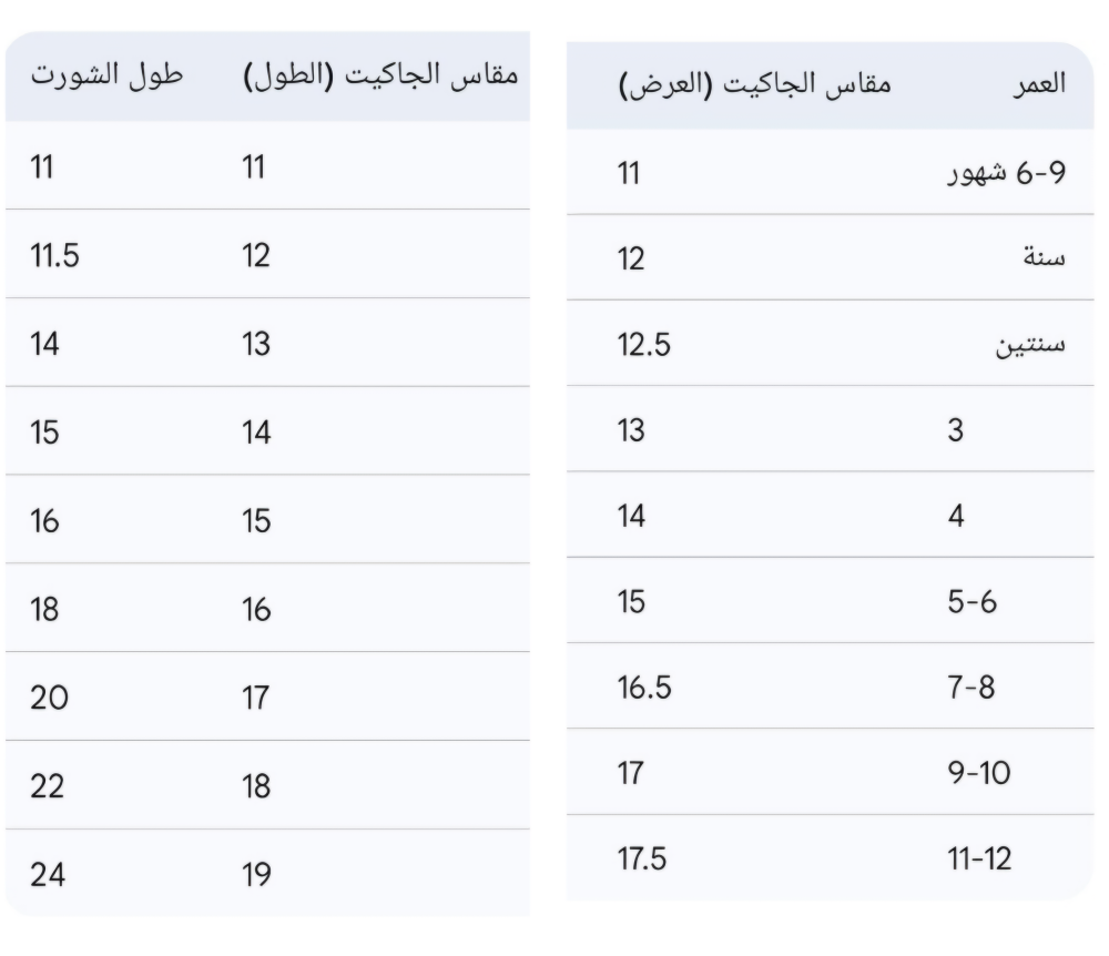📏 مقاسات من 3 شهور حتى 12 سنة